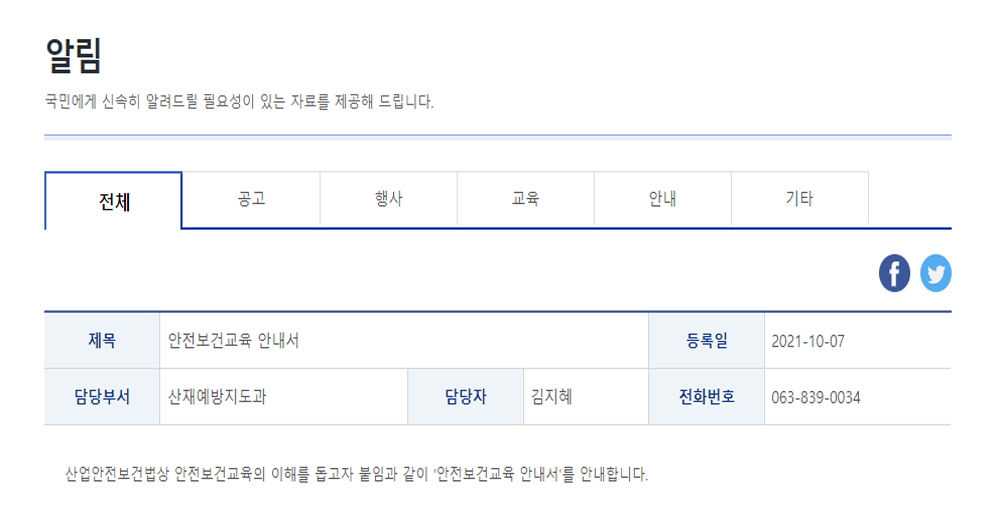 산재예방지도과, 안전보건교육 안내서